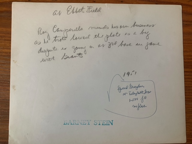 A jersey number that had escaped me was that of the first base coach. He is wearing number 27. Since Baseball-Reference does not list the jersey numbers of coaches, I looked on eBay until I found a 1941 Philadelphia Athletics scorecard. There, I found that Coach Earle Mack wore number 27, another match for our photograph. See the scorecard just below with a magnified inset from the photo in question.