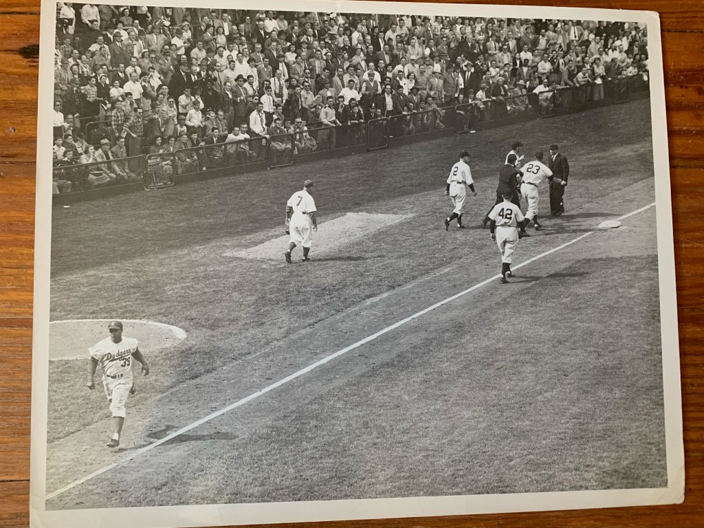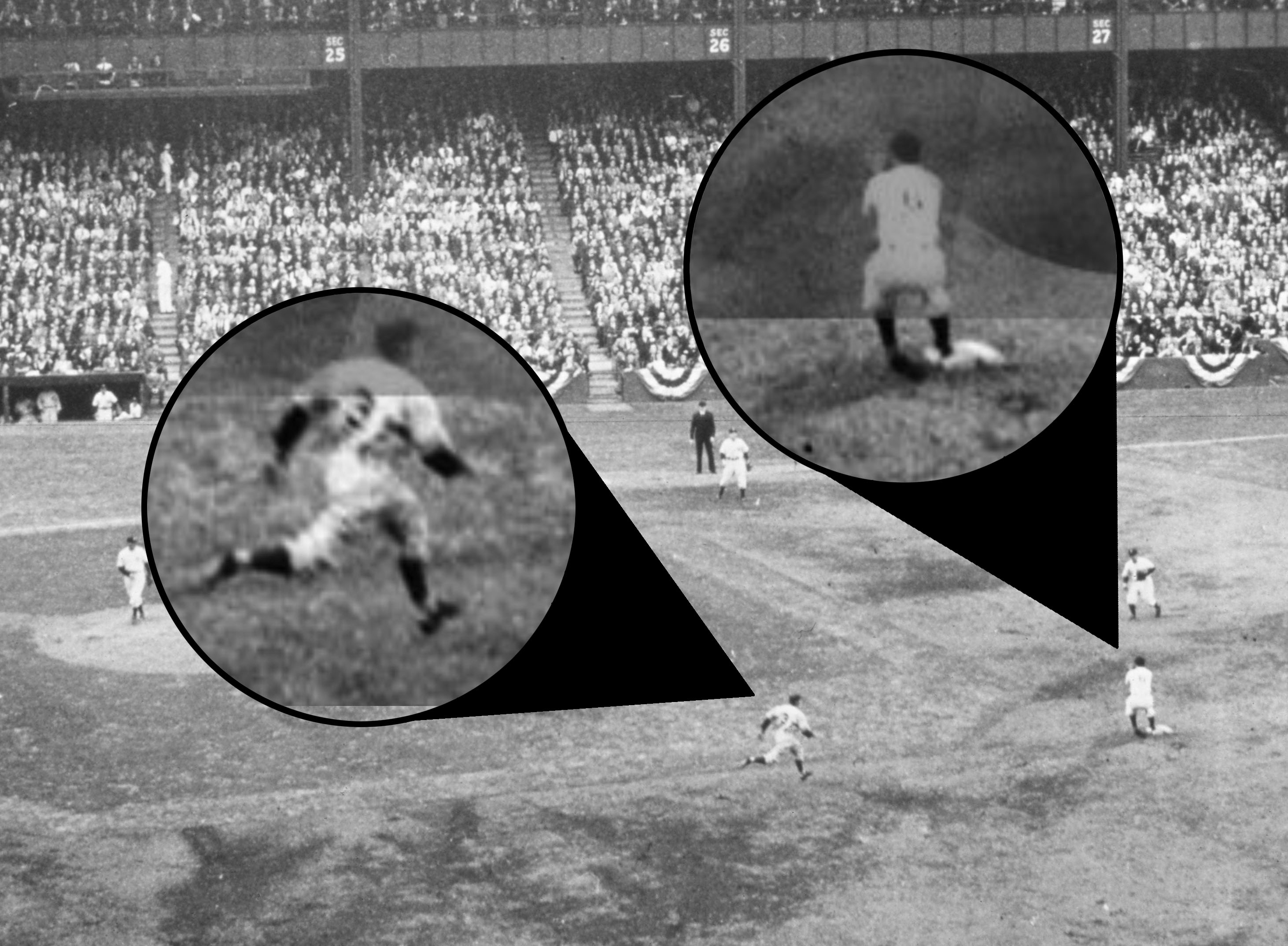 I focused on the Yankees’ second baseman and the runner heading to second base. Refer to the photo in question with magnified insets below. The Yankees’ second baseman is wearing number 6, which matches up with Joe Gordon. However, Gordon played in five World Series with the Yankees: 1938, 1939, 1941, 1942, and 1943. The unknown base runner is wearing number 3. The player who wore number 3 for the Brooklyn Dodgers in the 1941 World Series was Pete Coscarart. Great, except for the fact that Coscarart did not play in Game 1 or 2 of that year’s World Series. That ruled out Coscarart. Checking the teams that played in the World Series against the Yankees in 1938, 1939, 1942, and 1943, and the players that wore number 3 for those teams, also ruled out those years.