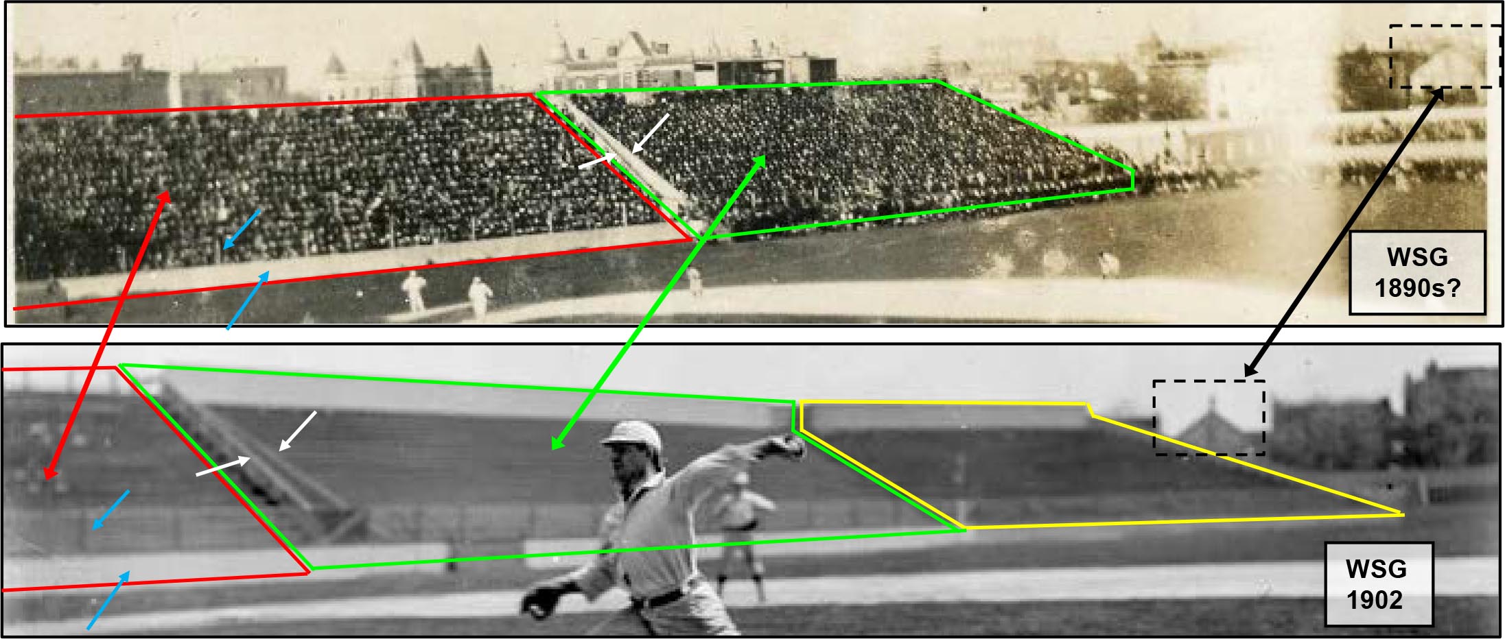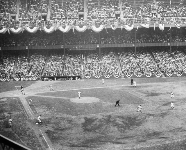 The biggest clue that the photograph is not from the 1943 World Series came from the bunting hanging on the facing of the third deck.