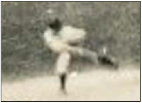 It took some work to rule out the 1941 World Series. Only Games 1 and 2 were played at Yankee Stadium, which helped narrow down the amount of information I needed to be weeded out. I wanted to determine which team was in the field and which team was batting, so I looked closer at the pitcher on the mound. The pitcher is wearing a New York Yankees uniform. With this in mind, we can begin examining the other players on the field and matching them up with play-by-play game records.